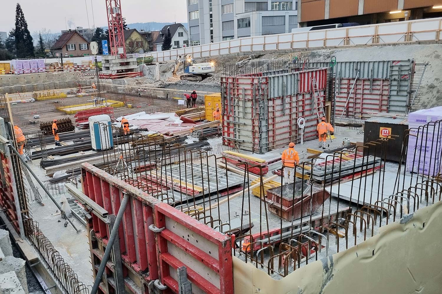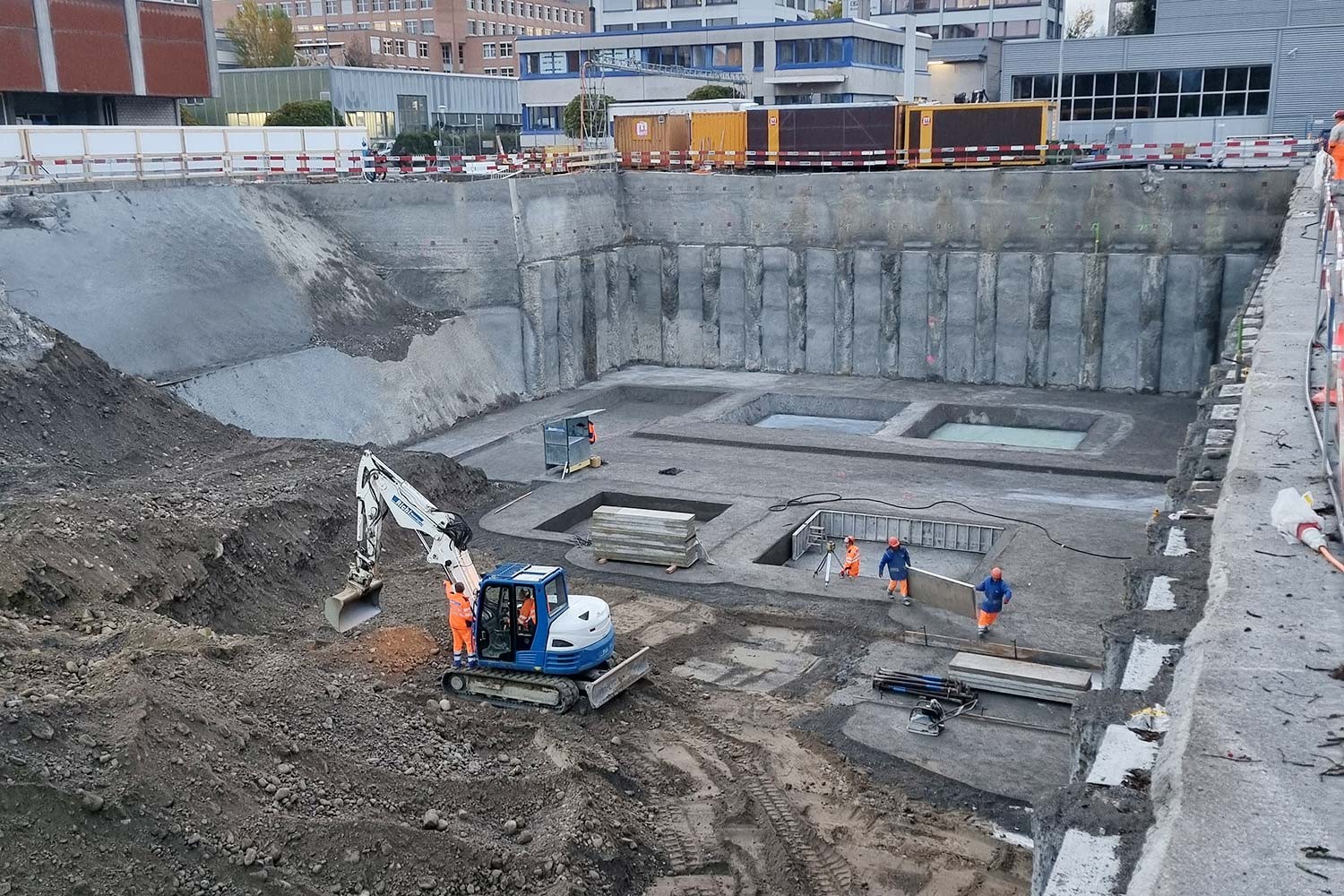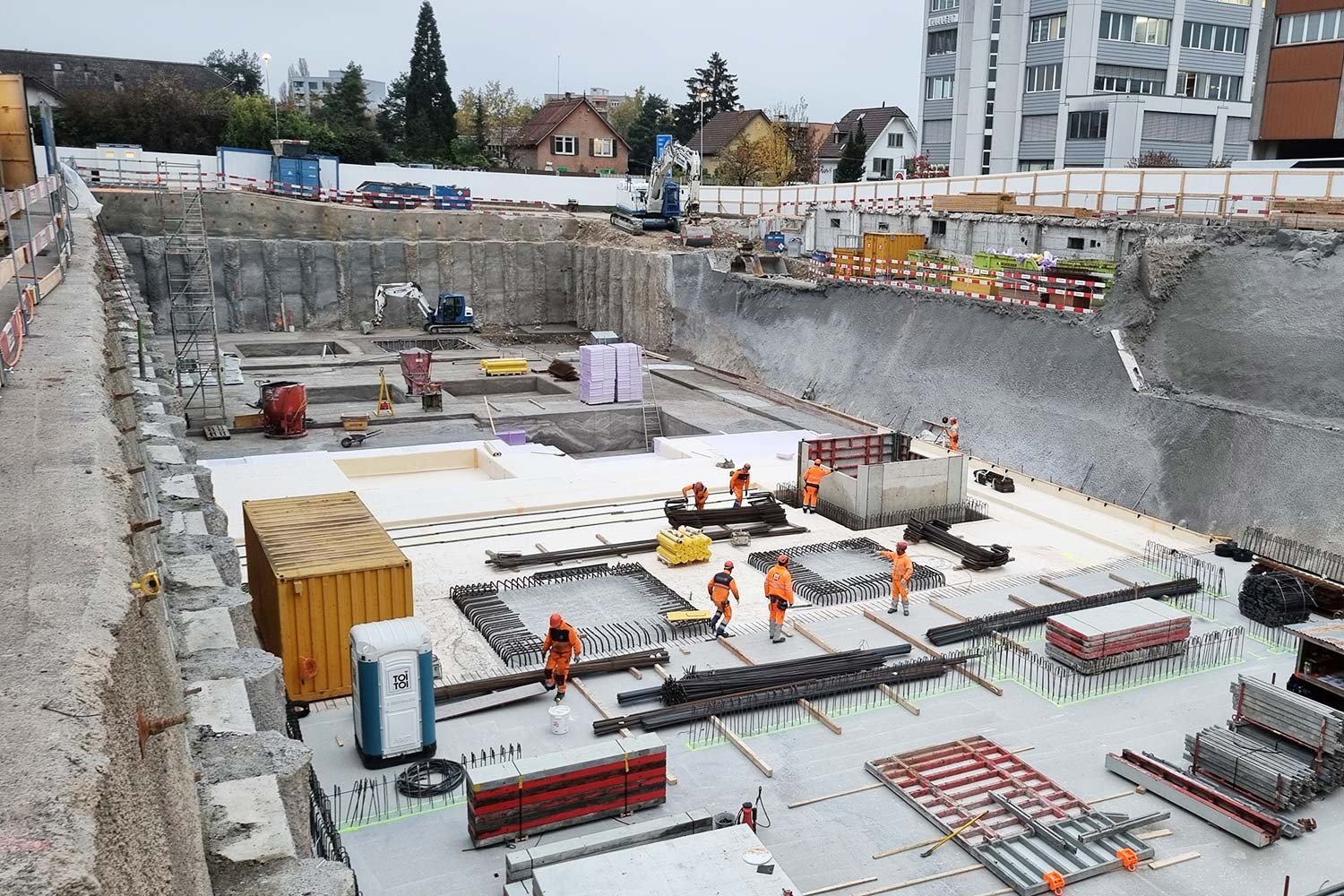 Besondere Anforderungen stellten die hohe Wasserdichtigkeit und die Erdbebensicherheit: Das gesamte Untergeschoss wurde als «gelbe Wanne» mit einer Frischbeton-Verbundfolie realisiert. Für die Erdbebensicherheit gilt Bauwerksklasse S, ausgelegt auf eine Wiederkehrperiode von 4’000 Jahren.
